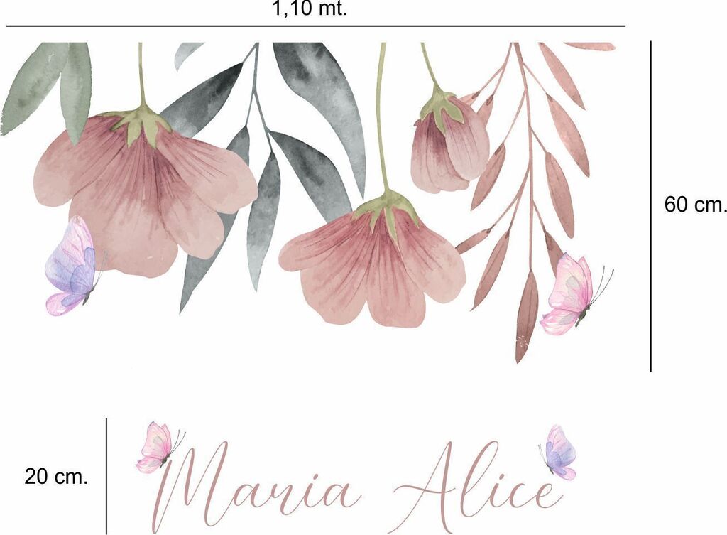 Adesivo Decorativo Folhagens Boho Nome e Borboletas